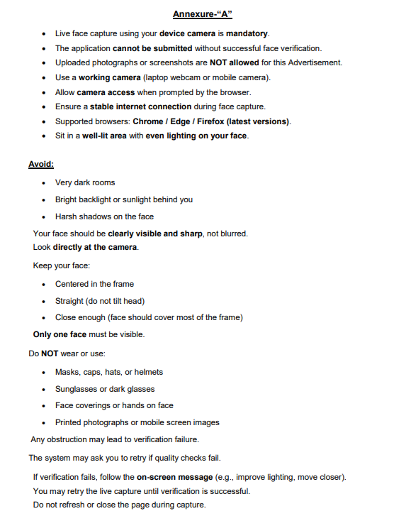 Upload Live Photograph strictly as per specifications mentioned in Annexure ‘A’.